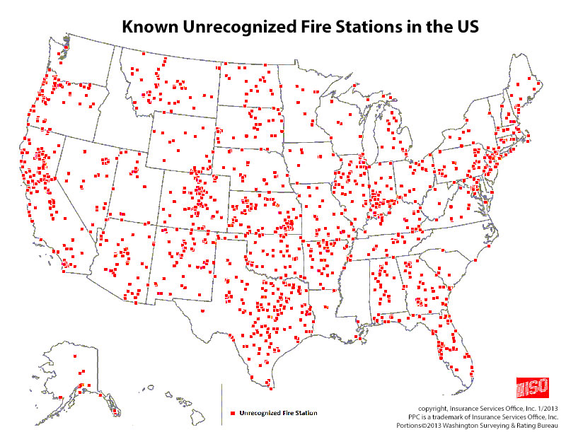 ISO has mapped 1,496 fire stations in the United States that lack minimum response capabilities for structure fires. Those stations are insufficient to receive credit in our PPC gradings.